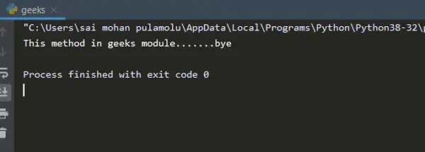 def> geek_method():> > print> (> 'This method in geeks module.......bye'> )> |
